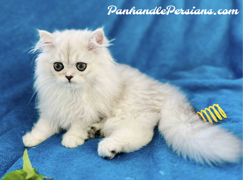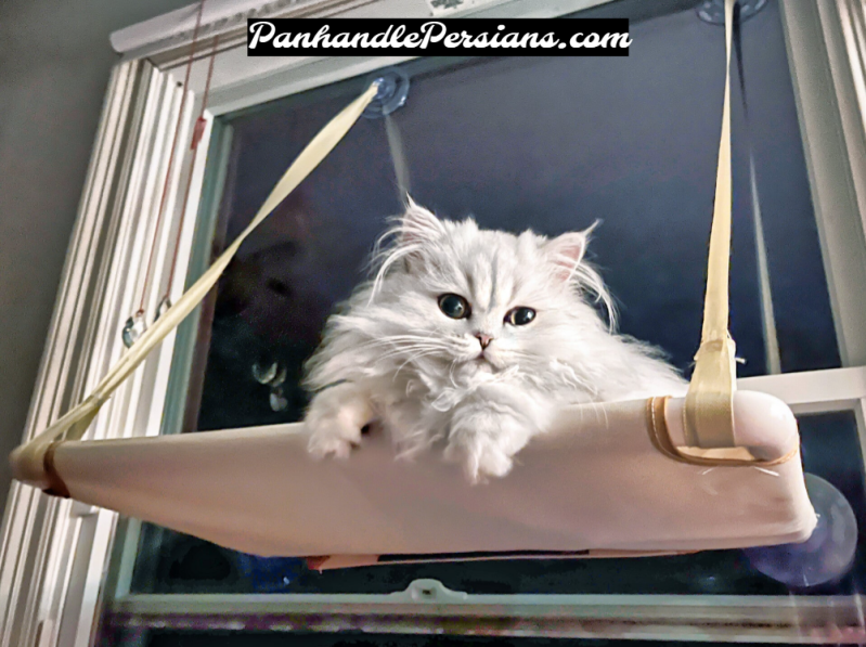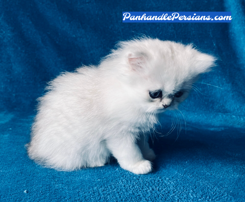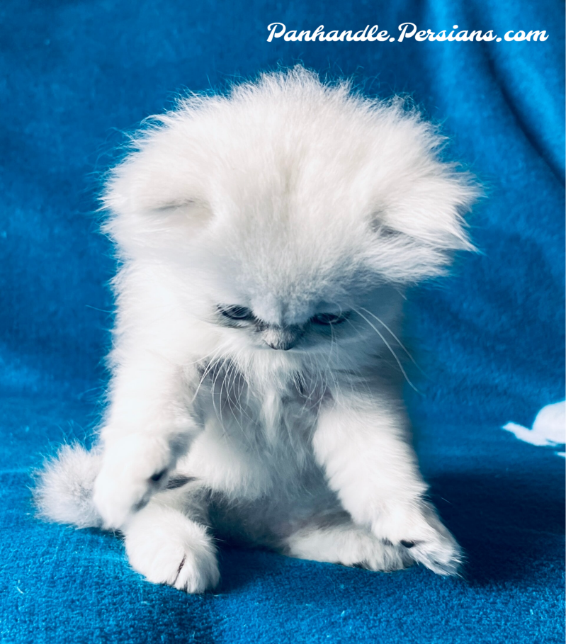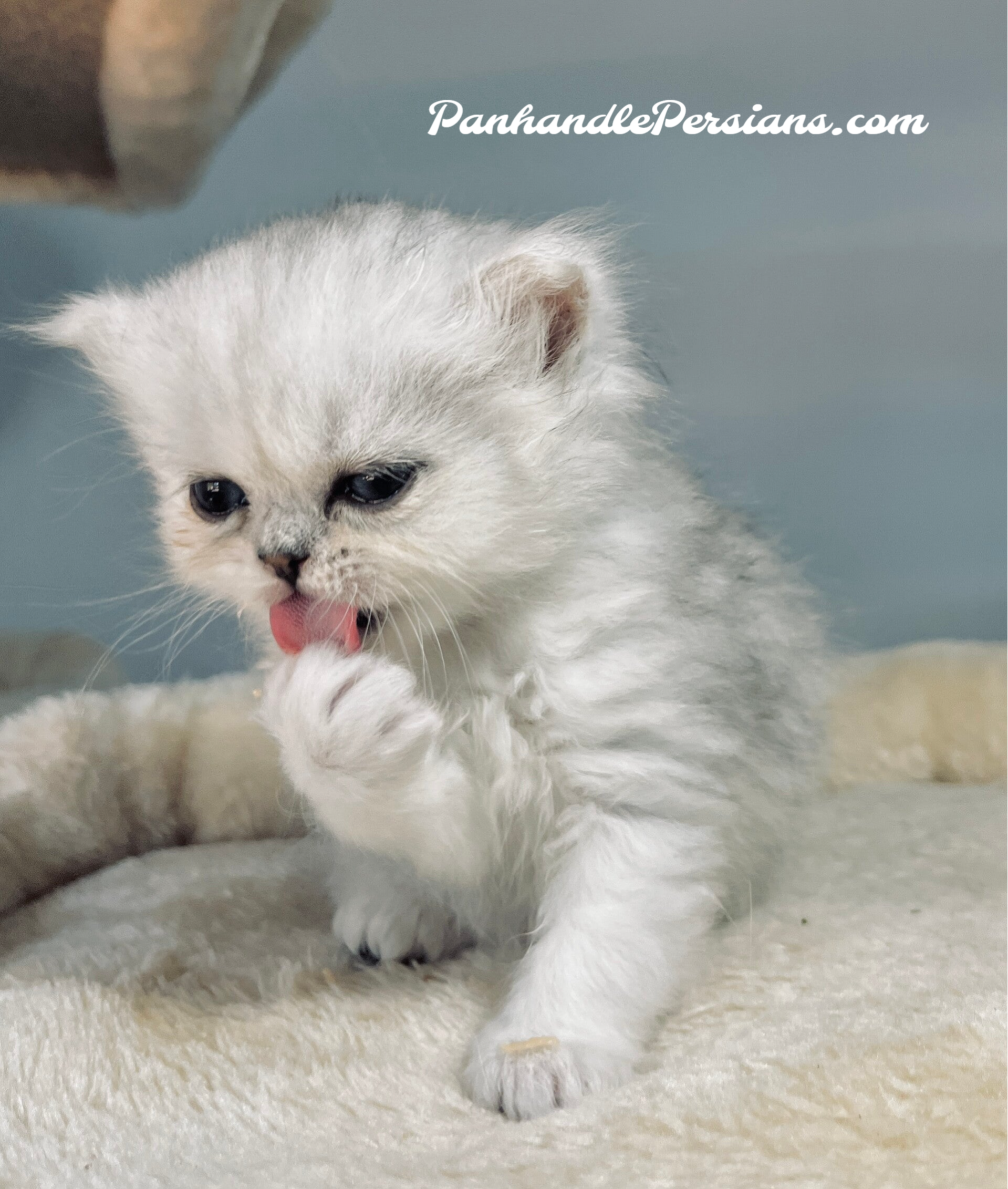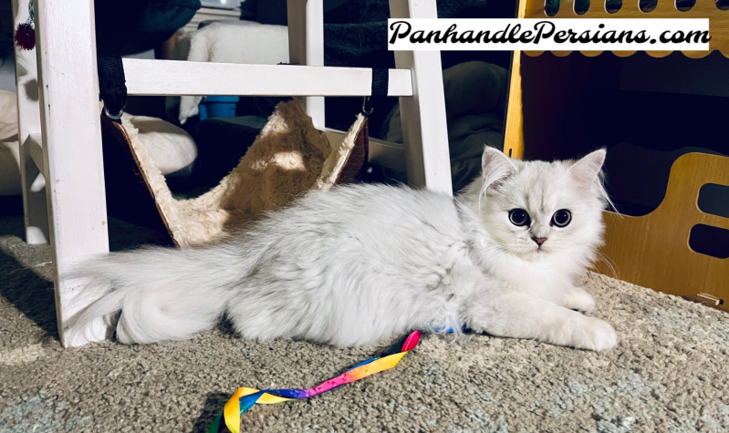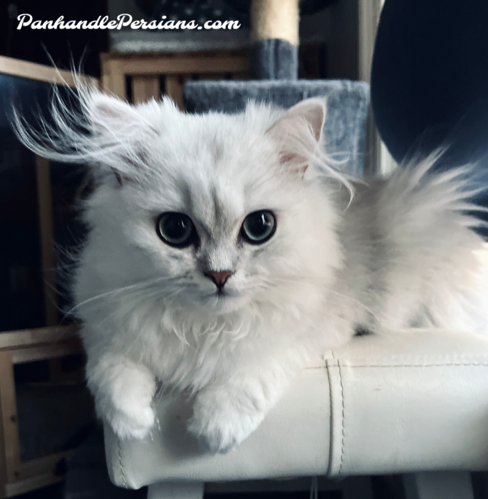 Our beautiful silver chinchilla boy. Tiny, quiet, timid little fella. Smallest of the litter, he has small frame and elegant pose. He is a sweet and quiet lap cat, loves cuddles and kisses. He looks extremely royal and elegant, just gorgeous.