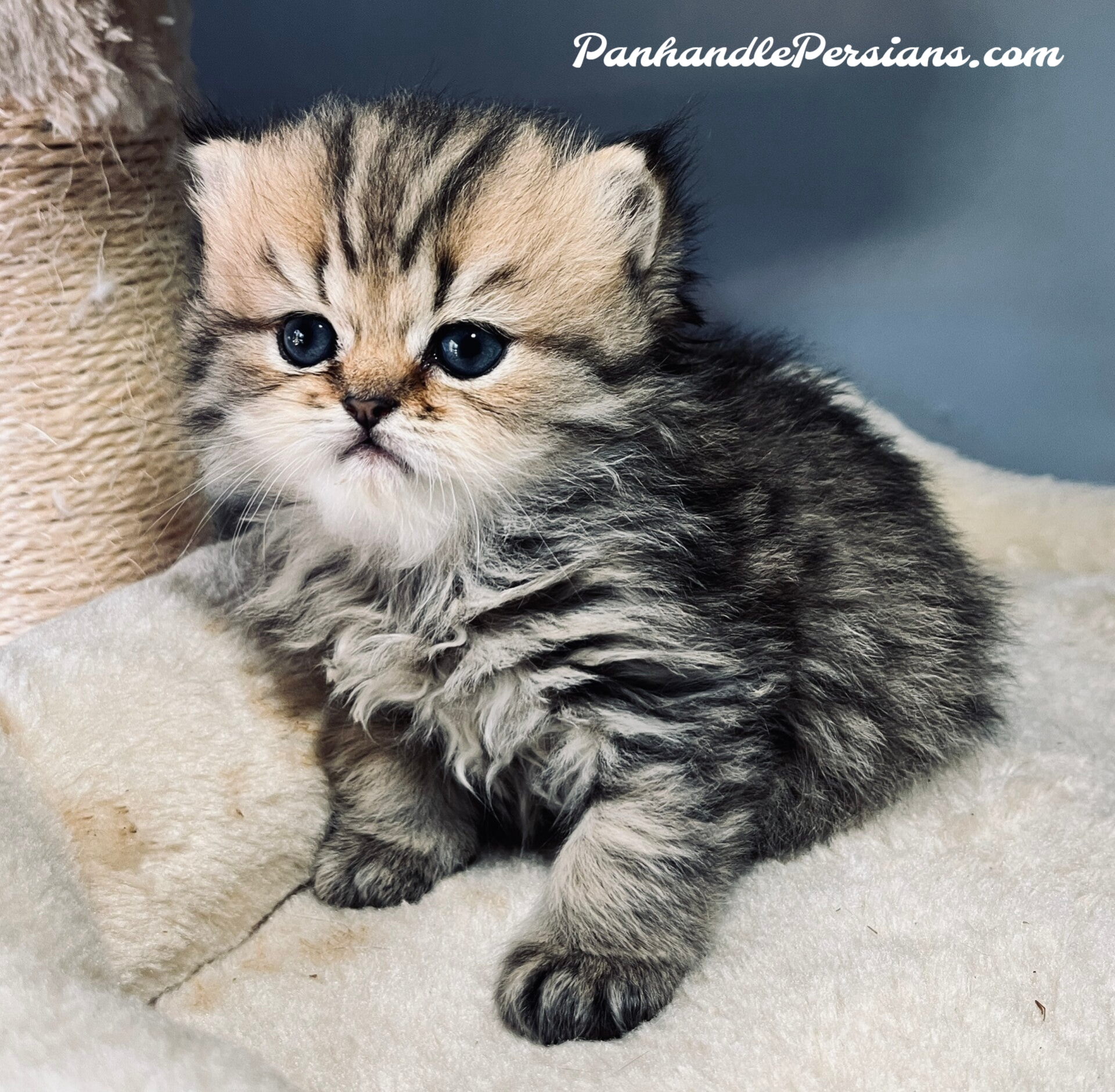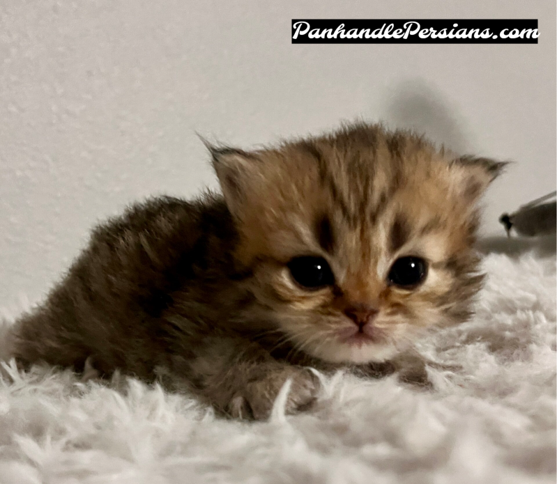 Morpheus is the sleeping beauty of the litter, has an adorable Persian face with sad beady eyes. He is quiet, independent and sweet. Let his loving eyes follow you as he strolls over and takes a nap in your lap. The fluffiest and puffiest of the litter, if you like a statement Persian coat, look no further.